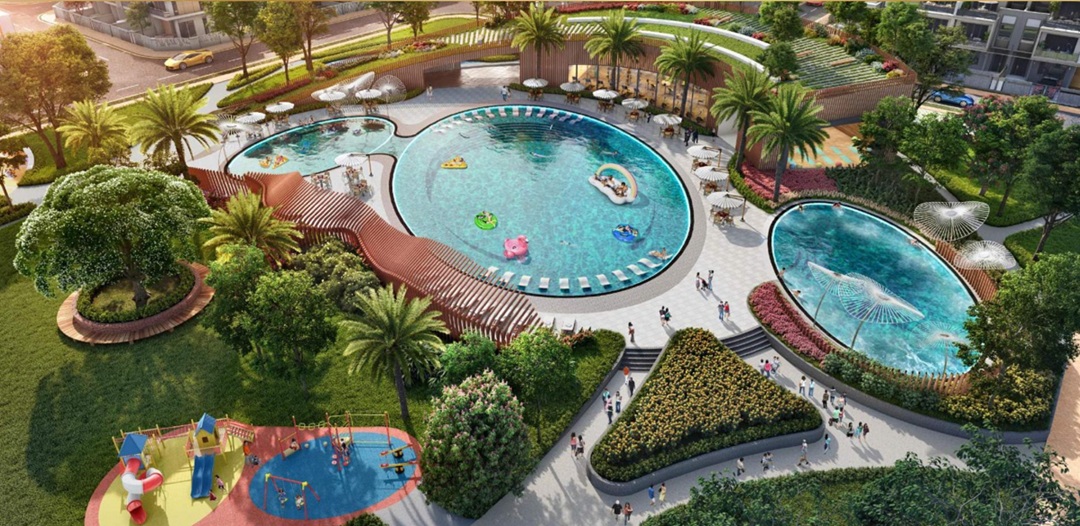 - Công viên ven sông, công viên nội khu, vườn hoa, đường dạo bộ với thảm thực vật xanh mướt mang lại môi trường sống trong lành, gần gũi thiên nhiên, điều mà hiếm có dự án nào đáp ứng được.
