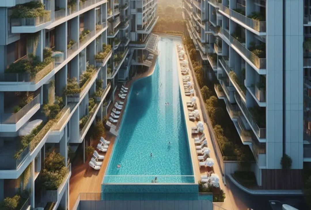 - Khu vực thư giãn ngoài trời và hồ bơi liên tầng của căn hộ cung cấp sự thư giãn ngay tại căn hộ.