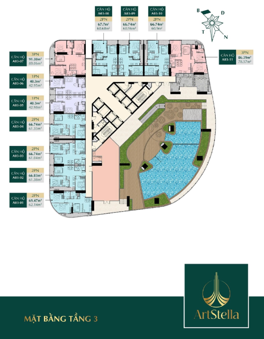 - 3PN có diện tích từ 88m2 đến 118m2.