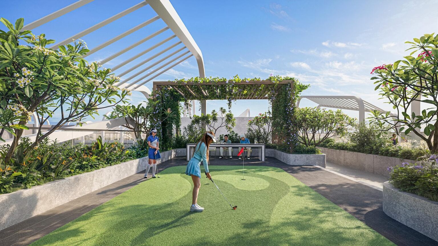 - Tầng 4: Tổ hợp tiện ích bao gồm hồ bơi, family garden, phòng golf 3D, gym.
