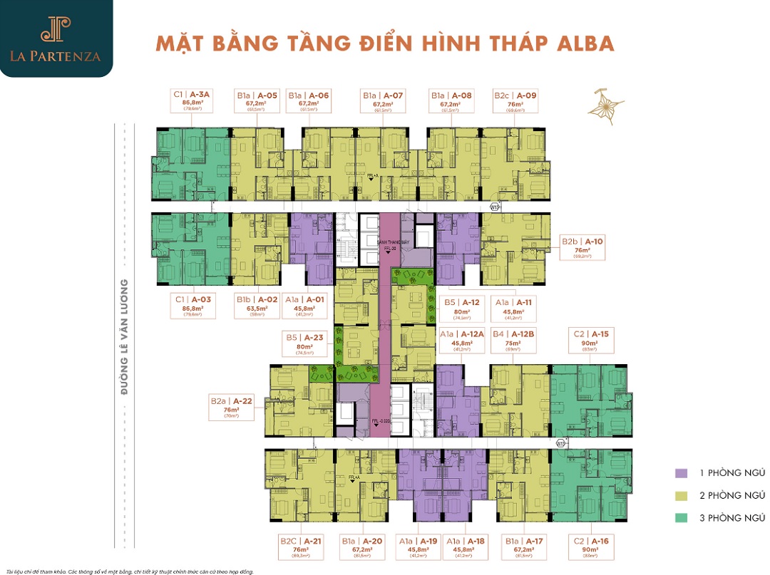 - Diện tích của căn hộ là+ căn hộ 1PN: 45.8m²