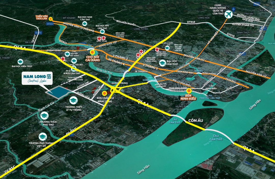 Đặc biệt, Cách dự án đất nền nhà phố và biệt thự Nam Long Cái Răng khoảng 2 km là đến cầu Cần Thơ – điểm nối quan trọng liên thông với giữa các tỉnh Đông Nam Bộ, Tây Nam Bộ, Tp.HCM và Đồng bằng sông Cửu Long.