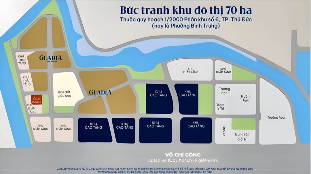 Tọa lạc ngay tại mặt tiền đường Võ Chí Công, phường Bình Trưng Đông, TP, phân khu Gladia Heights là một phần của dự án Gladia by The Waters. Thủ Đức, TP.HCM là một trong những trục đường quan trọng nhất trong khu vực Đông Sài Gòn. Dự án nằm trong khu đô thị Cát Lái – Bình Trưng, có quy mô hơn 66 ha. Nó nằm gần các khu dân cư hiện có như PhoDong Village, Thạnh Mỹ Lợi và Cát Lái, tạo nên một môi trường sống đã định hình và sầm uất. Là một trong những địa thế hiếm có nhất trên thị trường bất động sản Việt Nam hiện nay. Cả khách hàng mua để an cư và các nhà đầu tư tìm kiếm lợi nhuận dài hạn đều có cơ hội tuyệt vời từ dự án của chủ đầu tư Khang Điền, nhờ sự kết hợp hoàn hảo giữa vị trí chiến lược, hạ tầng phát triển và tiềm năng tăng trưởng.