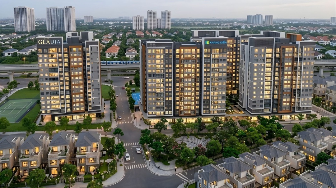 Gladia Heights khu căn hộ cao tầng được chủ đầu tư Khang Điền và Keppel Land phát triển tại đường Võ Chí Công, Phường Bình Trưng, Thành phố Hồ Chí Minh. , lấy cảm hứng từ khái niệm “Terrarium—Vườn cảnh thủy tinh” và là hiện thân của phong cách sống xanh hiện đại, nơi con người hòa quyện với thiên nhiên trong một không gian sống đẳng cấp. Chung cư Gladia Heights có 616 căn hộ với thiết kế 15 tầng nằm trong khoảng 70 ha của đại đô thị. Dự án đóng vai trò là mảnh ghép cao tầng quan trọng bên cạnh các khu thấp tầng và hệ thống tiện ích nội khu.