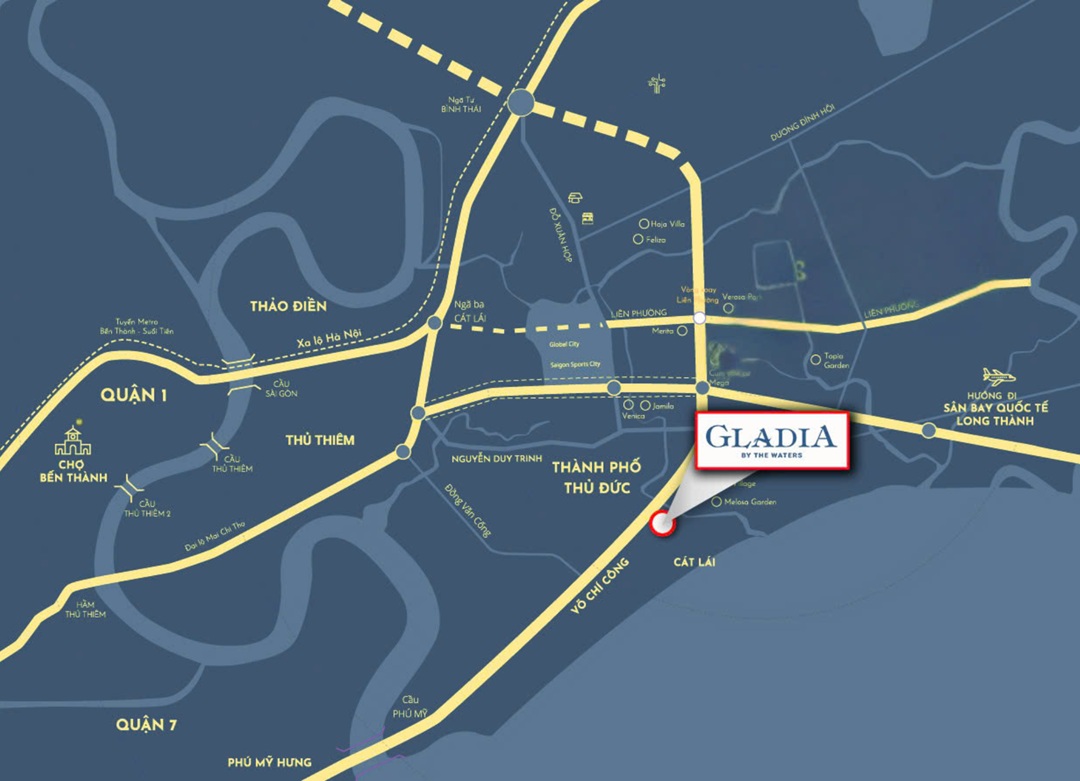 Gladia Khang Điền nằm ở vị trí quan trọng ở cửa ngõ phía Đông Sài Gòn. Cư dân có thể tiếp cận nhanh chóng với các trục đường quan trọng như cao tốc TP.HCM – Long Thành – Dầu Giây, đường Vành đai 2, Vành đai 3, Đồng Văn Cống, Nguyễn Duy Trinh và Lương Định Của. Vị trí này không chỉ dễ dàng di chuyển đến trung tâm Quận 1, Thủ Thiêm và Quận 7 mà còn dễ dàng tiếp cận các khu đô thị mới, khu công nghệ cao và sân bay Long Thành sắp tới. Tổng thể quy hoạch 1/2000 cũng bao gồm dự án này. Khu dân cư Cát Lái – Bình Trưng, có diện tích 66,08 ha, là một định hướng phát triển bền vững có thể giúp gia tăng giá trị bất động sản trong thời gian dài.