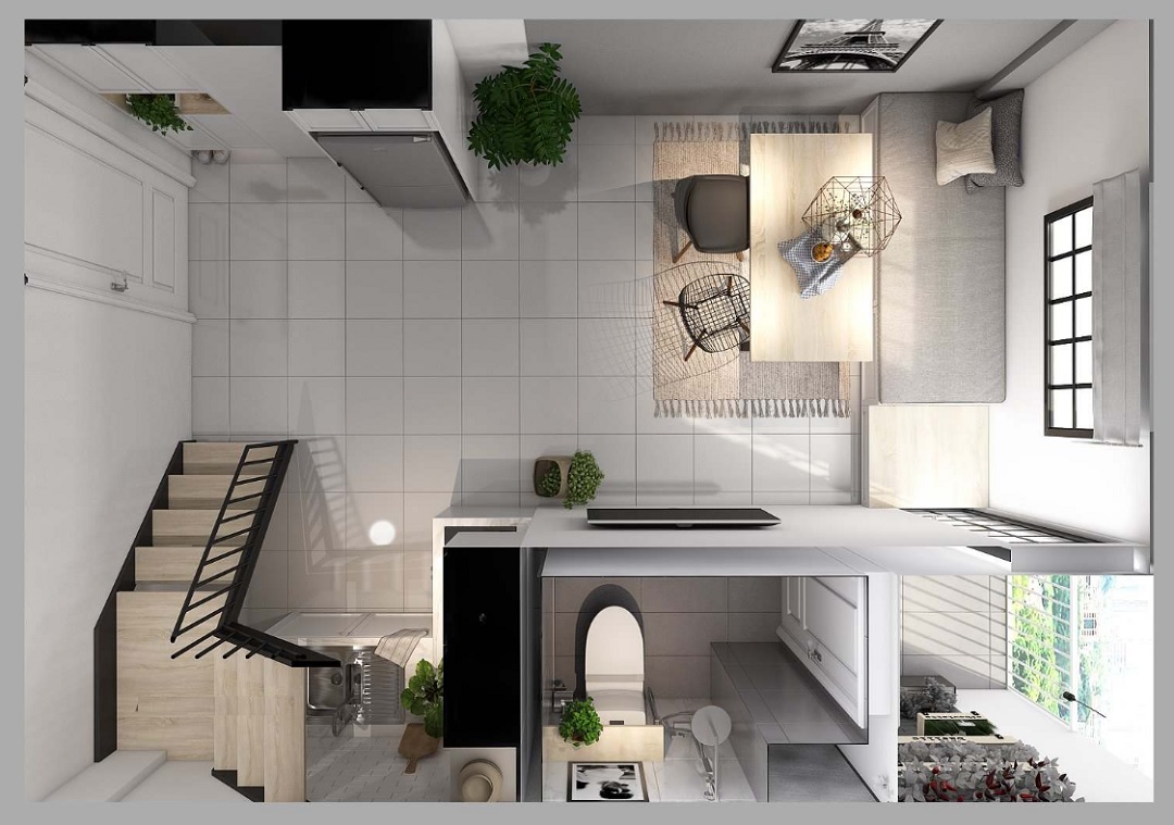 Mỗi căn hộ có đầy đủ các công năng, bao gồm phòng khách, phòng ngủ, khu vực bếp và nhà vệ sinh, đồng thời tất cả các phòng đều có ánh sáng tự nhiên.