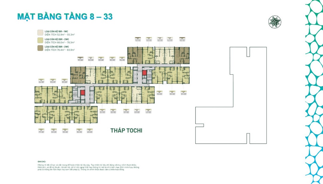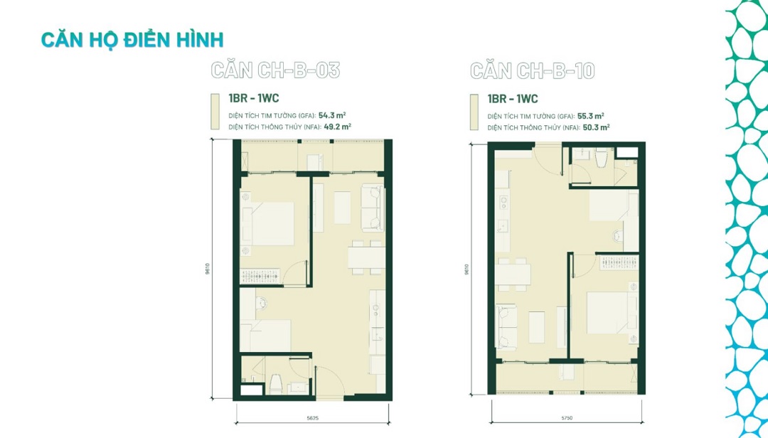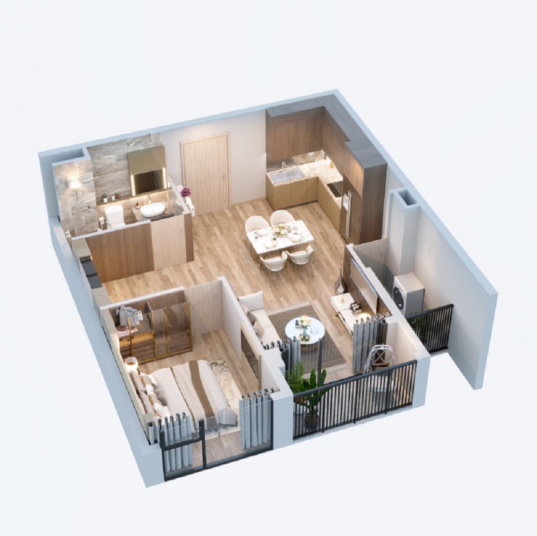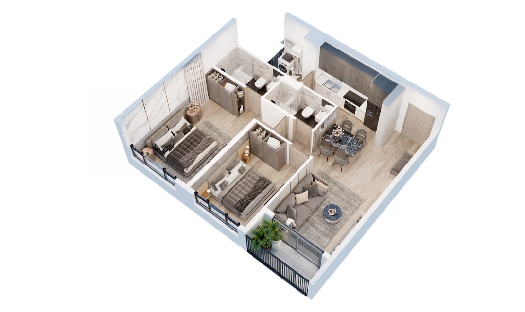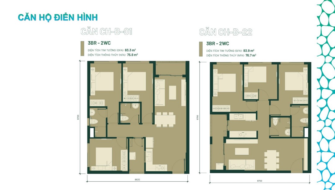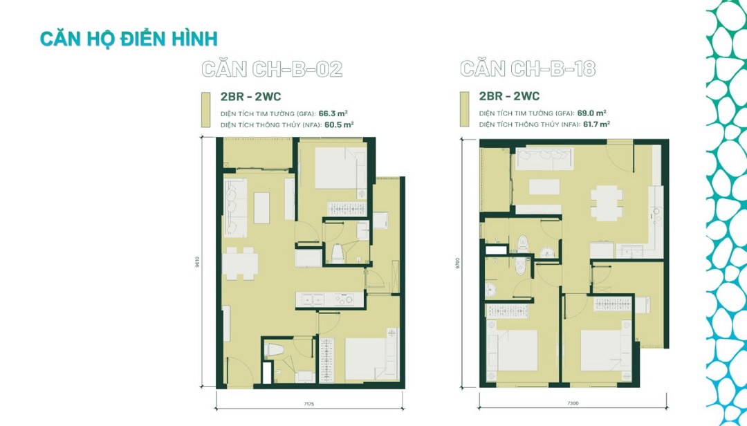 - Căn hộ 2PN-2WC có diện tích 69-73 m2.