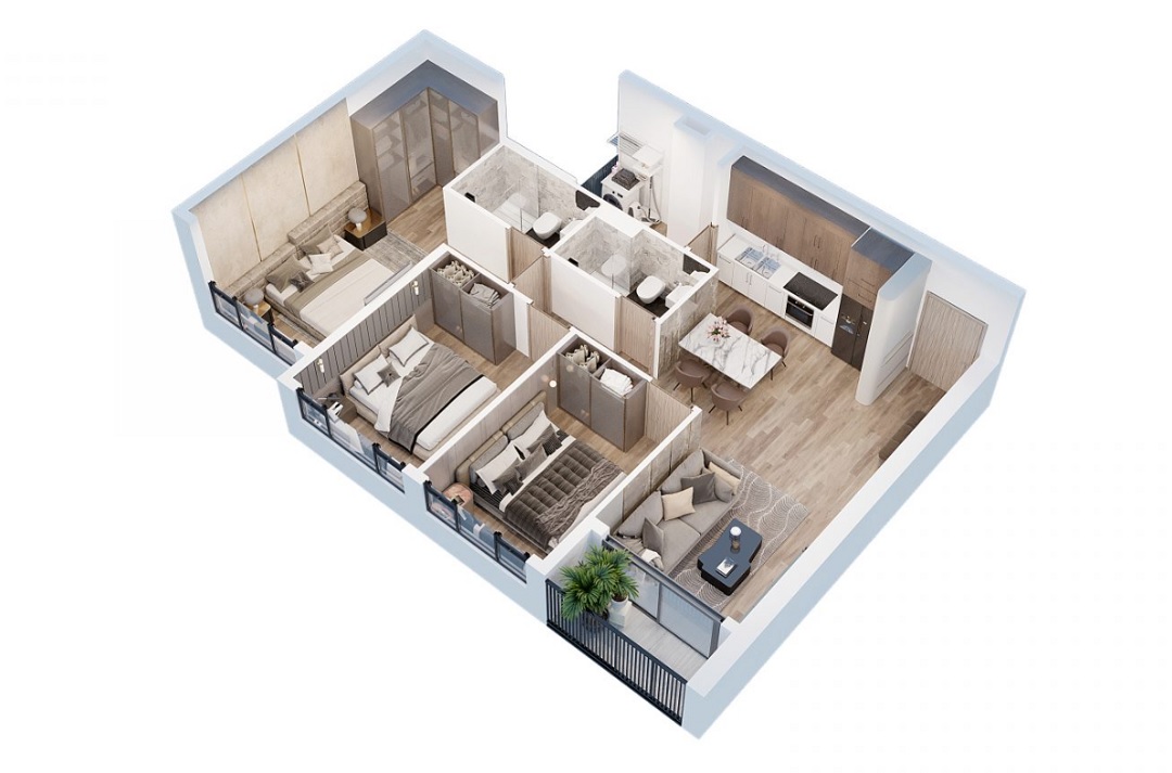 - Căn hộ 3PN-2WC có diện tích 85-105 m2.