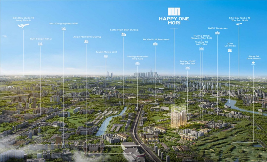 Thủ Dầu Một đã không ngừng khẳng định vị trí của mình trong nhiều lĩnh vực quan trọng trong những năm qua, đặc biệt là trong ngành bất động sản. Dự án Happy One Mori, được giới thiệu vào cuối năm 2025, đã phần nào đáp ứng nhu cầu đầu tư và an cư của thành phố Thủ Dầu Một. Căn hộ Happy One Mori hứa hẹn sẽ là nơi an cư lý tưởng, đầu tư tuyệt vời và góp phần thay đổi diện mạo đô thị và xây dựng cộng đồng dân cư văn minh với những ưu thế tuyệt vời về vị trí, tiện ích tích hợp, hạ tầng và thiết kế.