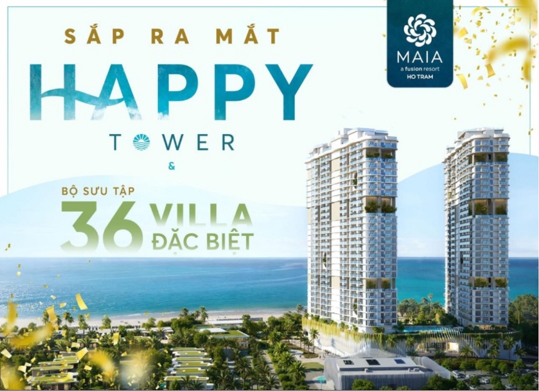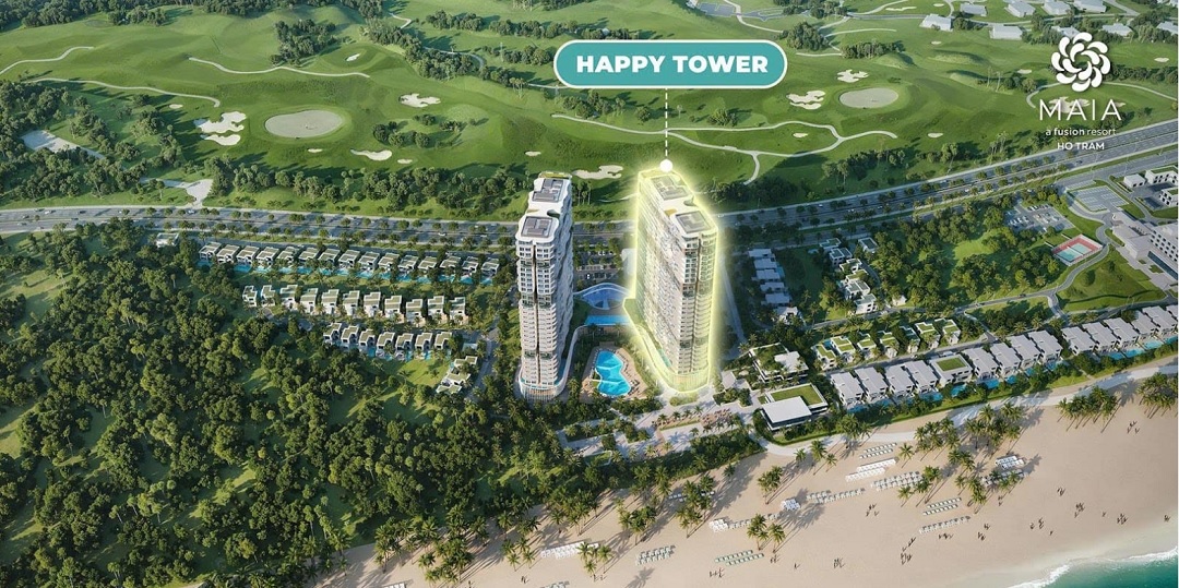 Căn hộ hướng biển Happy Tower Hồ Tràm nằm trong khu đô thị MAIA Hồ Tràm, tòa tháp căn hộ thứ hai thuộc phân khu nghỉ dưỡng MAIA Resort Hồ Tràm, đang thu hút giới đầu tư. Dự án nằm trong tổ hợp tỷ đô The Grand Hồ Tràm. Nó nằm gần “thủ phủ du lịch” phía Nam và có tầm nhìn kép hiếm có: nó nhìn xuống đại dương Hồ Tràm và sân golf The Bluffs, một trong những sân golf hàng đầu thế giới. Happy Tower cung cấp cho khách hàng một cuộc sống nghỉ dưỡng tinh tế và khẳng định giá trị đầu tư bền vững trong dài hạn với kiến trúc hiện đại lấy cảm hứng từ thiên nhiên và hệ sinh thái tiện ích đầy đủ.