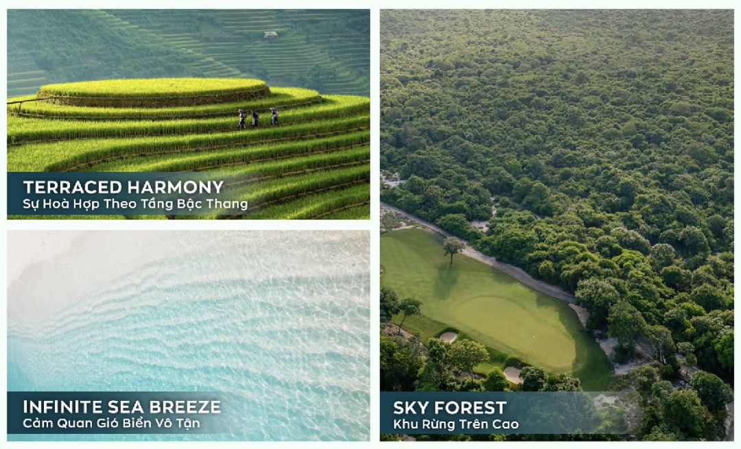 Mỗi căn hộ sẽ nhận được ánh sáng và gió biển tự nhiên nhờ thiết kế mặt đứng gợi nhịp điệu của sóng biển. Các khu vườn nhỏ trên trời là một phần của thiết kế này. 100% căn hộ có view biển trực diện, mang lại cho bạn một cuộc sống thư thái và thanh tao.