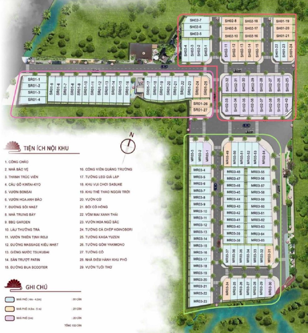 Mặt bằng dự án Sei Harmony Bình Tân: bao gồm 132 căn nhà phố liền kề được thiết kế theo mô hình một trệt, một lửng, hai lầu và sân thượng. Mỗi căn nhà đều có sân vườn xanh mát, mang đến không gian sống hài hòa giữa tiện nghi hiện đại và sự thư giãn của thiên nhiên.