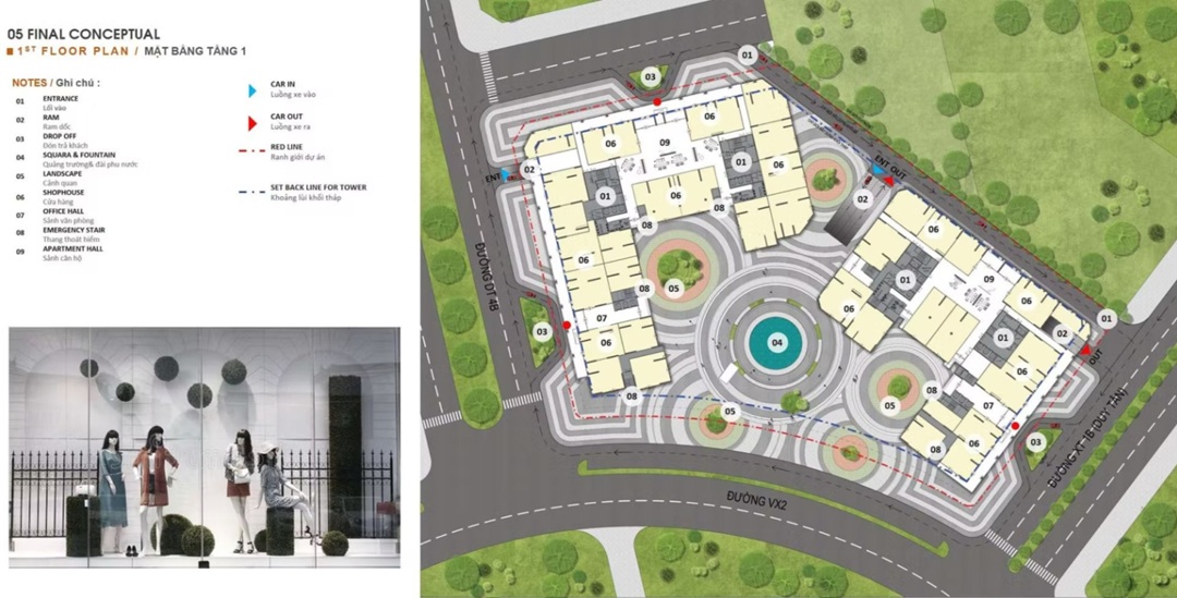 - Khối đế thương mại tầng 1–2 tập trung vào mua sắm, ăn uống và các dịch vụ thiết yếu.