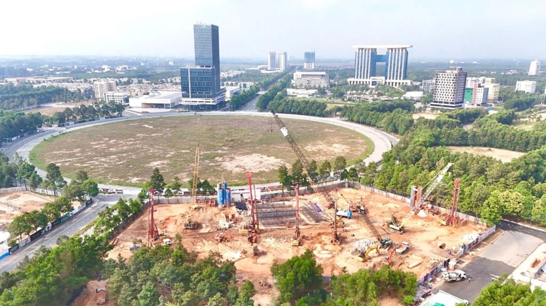 - Một số lượng lớn máy khoan cọc nhồi, cẩu tháp và thiết bị cơ giới vẫn đang hoạt động.