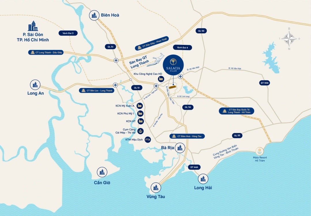 Salacia Villas là nơi sống lý tưởng cho chuyên gia với những vị trí tuyệt vời Salacia Villas ở Hắc Dịch—Tóc Tiên, thị xã Phú Mỹ, Bà Rịa—Vũng Tàu là điểm đầu của cụm Logistics Phú Mỹ tương lai và dễ dàng kết nối với cụm công nghiệp cảng biển lớn nhất của Việt Nam.