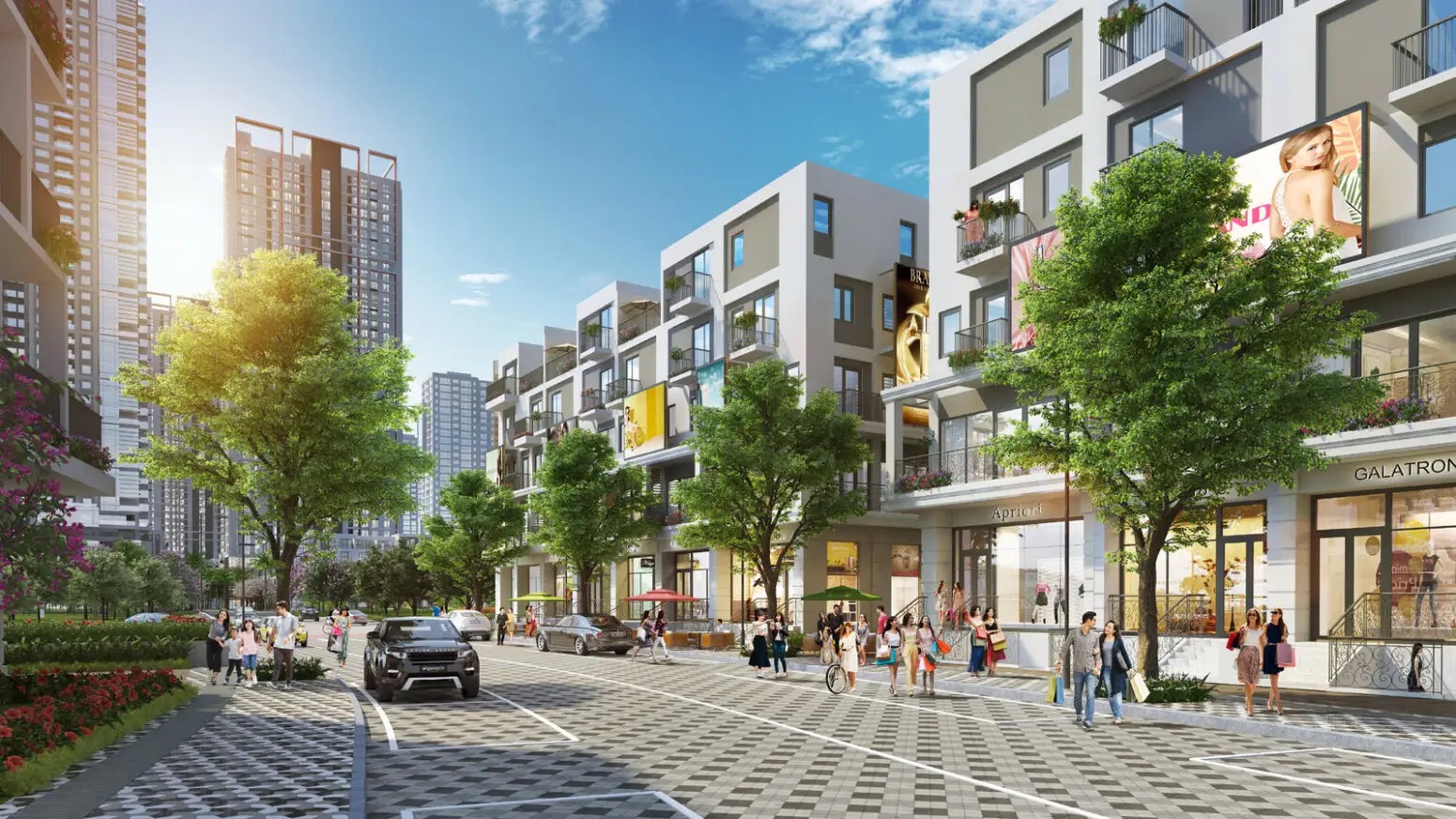 - Tiện ích nội khu đẳng cấp: Phố đi bộ sôi động, quảng trường Châu Âu tráng lệ, Khu phức hợp Aura – điểm đến của sự kiện, giải trí và chăm sóc sức khoẻ hàng đầu, Trung tâm nghiên cứu và phát triển công nghệ cao, trung tâm kinh doanh bán lẻ, khu thể thao hỗn hợp và bể bơi ngoài trời.